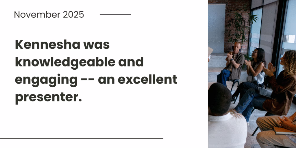 Kennesha is trained in CBT and several experiential modalities including EMDR, Psychodrama, Somatic Therapy, and Parts Work, which allows her to integrate experiential techniques in her continuing education offerings. Having a personal connection to the work that she teaches, Kennesha’s workshops allow attendees to connect and relate not only to the material, but to each other and their clients.